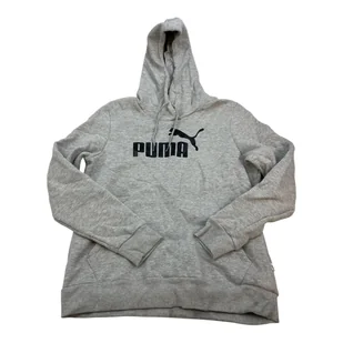 Bluza dziecięca Puma – rozmiar XL Klasyczna szara bluza z kapturem marki Puma, ozdobiona dużym czarnym logo na froncie. Wykonana z miękkiego, przyjemnego w dotyku materiału, idealna do szkoły, na podwórko czy trening. Model z regulowanym kapturem oraz ściągaczami przy rękawach i dole, co zapewnia wygodę noszenia. Bluza była używana i posiada dwie widoczne plamki (pokazane na zdjęciach): jedna z tyłu na ramieniu, druga na plecach, niżej.