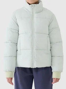 Kurtka puchowa w kolorze miętowym - technologia: 4F Warm - wodoodporność - właściwości termoizolacyjne - kołnierz: stójka - zapięcie: suwak - osłona podbródka: tak - wpuszczane kieszenie: