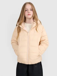 Posiada krój regular, który wygodnie dopasowuje się do sylwetki oraz standardową długość sięgającą do linii bioder. Kurtka puchowa pikowana dziewczęca z wypełnieniem w postaci puchu syntetycznego Kurtka puchowa 4F dziewczęca z puchem syntetycznym, który jest trwalszy i łatwiejszy w utrzymaniu niż puch naturalny. Nawet przy kontakcie z wilgocią, zachowuje swoje właściwości izolacyjne przez dłuższy czas oraz o wiele szybciej schnie. Dodatkowo nie wymaga skomplikowanego procesu prania i suszenia. Funkcjonalne rozwiązania dla maksymalnego komfortu:
