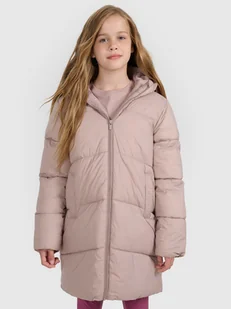 4F Płaszcz puchowy z wypełnieniem syntetycznym dziewczęcy - brązowy 122 (6-7 lat)
