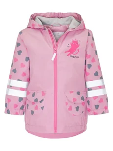 Kurtka przeciwdeszczowa w kolorze jasnoróżowym - kaptur: tak - zapięcie: suwak - osłona podbródka: tak - zakończenie rękawów: elastyczne - wpuszczane kieszenie: 2 - odblaskowe detale - wzór: mix