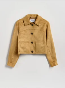 Reserved - Krótka kurtka z imitacji zamszu - bursztynowy