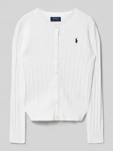 Dziecięcy kardigan rozpinany od Polo Ralph Lauren Teens;Efekt: jednolity kolor;Dopasowanie: Regularny krój;Zapięcie: listwa guzikowa jednorzędowa;Wzór: Ścieg warkoczowy;Kształt kołnierza: