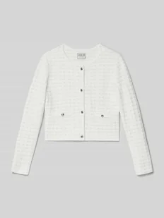 Kurtka z dzianiny dziecięca Guess;Mieszanka materiałów z dodatkiem wiskozy;Krój regular fit;Model ‘CEREMONY’;Fakturowany wzór;Okrągły dekolt;Listwa guzikowa;Długość tyłu w rozmiarze 140: 38 cm