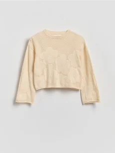 Reserved - Bawełniany sweter - kremowy