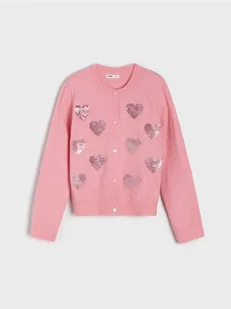 Sinsay - Sweter zapinany na guziki - różowy - okrągły dekolt,zapinany na guziki,ozdobne serca wykonane z cekinów