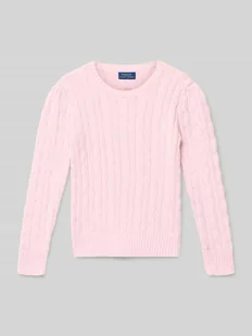 Sweter z dzianiny dziecięcy Polo Ralph Lauren Teens;Czysta bawełna;Krój regular fit;Ścieg warkoczowy;Wyhaftowane logo;Okrągły dekolt;Długość tyłu w rozmiarze S: 45 cm;Długość rękawa w rozmiarze S: 50 cm