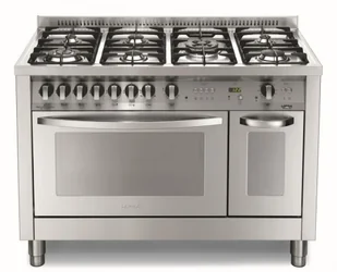 KUCHNIA GAZOWA I PŁYTA: stal satynowa wykończenie stal satynowa 7 palników gazowych zaworowych Seria III, w tym 1 palnik potrójny i 1 palnik podwójny włącznik elektroniczny zintegrowany z pokrętłem ochrona Gaz-Stop żeliwny ruszt PIEKARNIK GŁÓWNY: gazowy z termoobiegiem włącznik elektroniczny zintegrowany z pokrętłem ochrona Gaz-Stop pojemność 94l wymiary wewnętrzne 65x35x40 cm grill elektryczny rożen cyfrowy programator elektroniczny końca pieczenia wysuwane prowadnice piekarnika PIEKARNIK DODATKOWY: