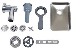 CASO Przystawka do maszynki do mielenia mięsa dla KM 1200 Chef, 3 różne tarcze perforowane, grube, średnie, drobne, średnica tarcz otworowych: 3,5, 8 mm, z popychaczem, nasadka do ciastek i produkcji