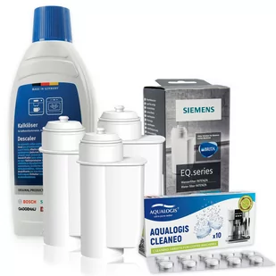 Zestaw Siemens, Filtr Intenza TZ70003 3szt, Odkamieniacz 311968 500ml, Tabletki Odtłuszczające Aqualogis Cleaneo Zestaw Do Ekspresu Siemens W zestawie: Filtr...