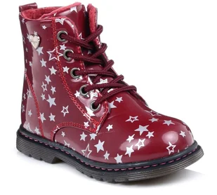 Trzewiki Wojtyłko wykonane z lakierowanego tworzywa, w kolorze bordowym. Podeszwa z bieżnikiem zapewnia stabilność przy chodzeniu. Wnętrze butów w całości o...