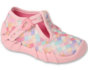 Kapcie dziewczęce domowe do przedszkola na zapinki różowe Befado 110P501-23