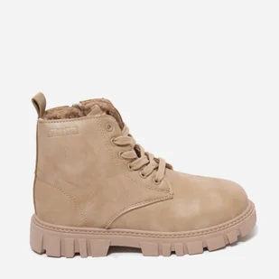 Dziecięce botki wkolorze beżowym od BIG STAR doskonale sprawdzą się wkażdej codziennej stylizacji. Wykonane są zwysokiej jakości skóry ekologicznej, która jest trwała, zapewnia komfort noszenia iświetnie się sprawdza na co dzień. Połączenie wiązanego zapięcia izamka gwarantuje idealne dopasowanie oraz łatwość zakładania izdejmowania. Okrągły nosek dodaje butom klasycznego, uniwersalnego wyglądu, alogo BIG STAR wybite zboku cholewki podkreśla markowy charakter tego modelu botków. Beżowy kolor nadaje butom subtelności ielegancji, czyniąc je idealnym wyborem na różne okazje.