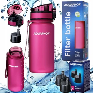Butelka filtrująca AQUAPHOR City 0,35 L RÓŻOWA w zestawie z 3 filtrami oraz paskiem do trzymania Usuwa chlor, metale ciężkie, alergeny oraz poprawia smak i z...
