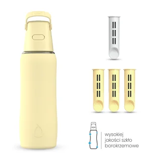 Szklana Butelka Filtrująca Dafi GLASS SiliconeFit 0,6 Yellow Butter 4x FiltrDafi Solid Glass SiliconeFit 0,6 l to pierwsza, szklana butelka filtrująca od Dafi