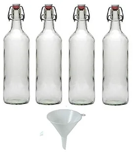 Viva Haushaltswaren Artykuły gospodarstwa domowego Viva 4 szklanych butelek z zamknięciem dźwigniowym 1L do samodzielnego napełniania wraz z białym lejkiem do napełniania 12 cm #14905#