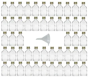 Viva Haushaltswaren - 50 x mini szklana butelka 20 ml z zakrętką, nadaje się jako piersiówka, butelka na wódkę i likiery (łącznie z lejkiem Ø 5 cm)