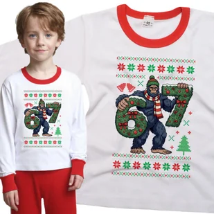Piżama dziecięca długi rękaw z nadrukiem 67 Sześć Siedem Mem Wielka Stopa Święta Wzór Świąteczny Biało-Czerwona 98/104 nr wzoru: nr wzoru: 122715135216 ...