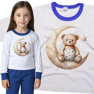 Piżama dziecięca długi rękaw z nadrukiem Boho Pluszowy Misio Siedzący Na Księzycu Dzień Misia Biało-Niebieska 110/116 nr wzoru: nr wzoru: 122914135131 ...