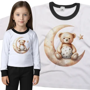 Piżama dziecięca długi rękaw z nadrukiem Boho Pluszowy Misio Siedzący Na Księzycu Dzień Misia Biało-Czarna 98/104 nr wzoru: nr wzoru: 122712135131 Twoj...