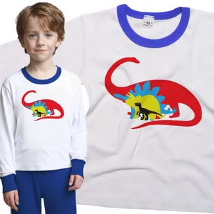 Piżama dziecięca długi rękaw z nadrukiem Dinozaury Brontozaur Stegozaur Triceratops Tyranozaur Biało-Niebieska 110/116 nr wzoru: nr wzoru: 122914133362 ...