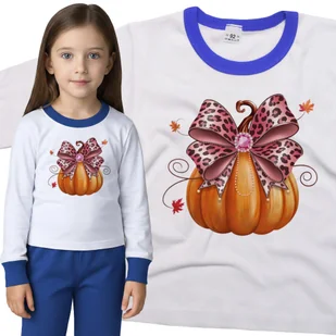 Piżama dziecięca długi rękaw z nadrukiem Dynia Z Różową Kokardą W Panterkę Dzień Dyni Biało-Niebieska 98/104 nr wzoru: nr wzoru: 122714134900 Twoje dzi...