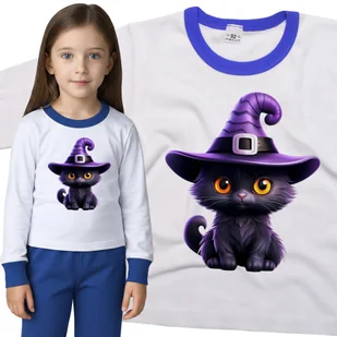 Piżama dziecięca długi rękaw z nadrukiem Fioletowy Czarny Kot Wiedźma Czarownica Halloween Biało-Niebieska 98/104 nr wzoru: nr wzoru: 122714135024 Twoj...