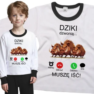 Piżama dziecięca długi rękaw z nadrukiem Muszę Iść Dziki Dzwonią Stado Dzików Biało-Czarna 98/104 nr wzoru: nr wzoru: 122712134790 Twoje dziecko zasług...