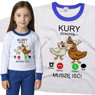 Piżama dziecięca długi rękaw z nadrukiem Muszę Iść Kury Dzwonią Dla Rolnika Biało-Niebieska 86/92 nr wzoru: nr wzoru: 122514134593 Twoje dziecko zasług...