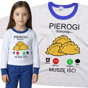 Piżama dziecięca długi rękaw z nadrukiem Muszę Iść Pierogi Dzwonią Biało-Niebieska 98/104 nr wzoru: nr wzoru: 122714134596 Twoje dziecko zasługuje na w...