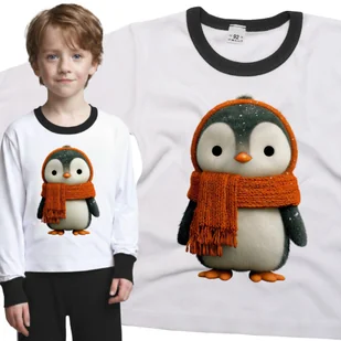 Piżama dziecięca długi rękaw z nadrukiem Słodki Mały Pingwin W Szaliku Zima Śnieg Święta Biało-Czarna 86/92 nr wzoru: nr wzoru: 122512135225 Twoje dzie...