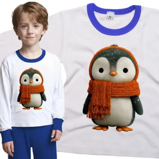 Piżama dziecięca długi rękaw z nadrukiem Słodki Mały Pingwin W Szaliku Zima Śnieg Święta Biało-Niebieska 86/92 nr wzoru: nr wzoru: 122514135225 Twoje d...