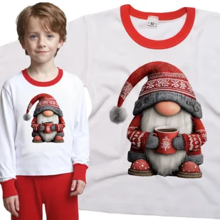 Piżama dziecięca długi rękaw z nadrukiem Świąteczny Gnom Krasnal W Czapce Z Kubkiem Święta Zima Biało-Czerwona 86/92 nr wzoru: nr wzoru: 122515135230 T...
