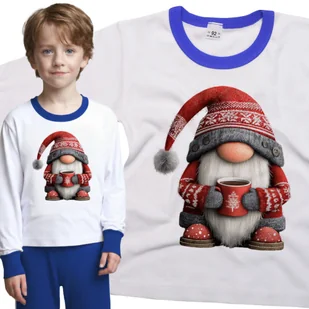 Piżama dziecięca długi rękaw z nadrukiem Świąteczny Gnom Krasnal W Czapce Z Kubkiem Święta Zima Biało-Niebieska 98/104 nr wzoru: nr wzoru: 122714135230 ...