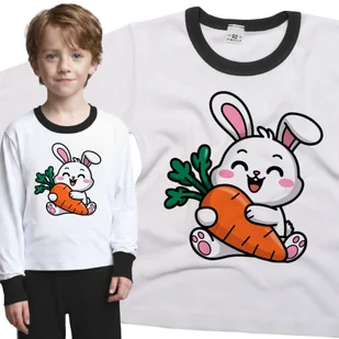 Piżama dziecięca długi rękaw z nadrukiem Wesoły Biały Królik Zając Trzymający Wielką Marchew Biało-Czarna 110/116 nr wzoru: nr wzoru: 122912135184 Twoj...