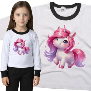 Piżama dziecięca długi rękaw z nadrukiem Wesoły Różowy Fioletowy Jednorożec Dla Dziewczynki Biało-Czarna 98/104 nr wzoru: nr wzoru: 122712135207 Twoje ...