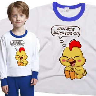 Piżama dziecięca długi rękaw z nadrukiem Wykończę Moich Starych Śmieszny Kurczak Urwis Biało-Niebieska 110/116 nr wzoru: nr wzoru: 122914135175 Twoje d...