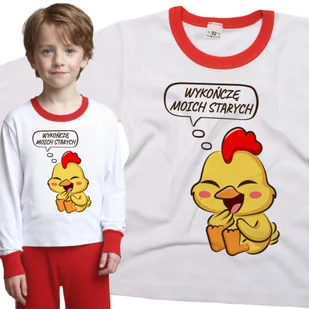 Piżama dziecięca długi rękaw z nadrukiem Wykończę Moich Starych Śmieszny Kurczak Urwis Biało-Czerwona 86/92 nr wzoru: nr wzoru: 122515135175 Twoje dzie...