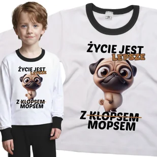 Piżama dziecięca Życie Jest Lepsze Z Klopsem Mopsem Pies Mops Pug 86/92 - VoloDonum