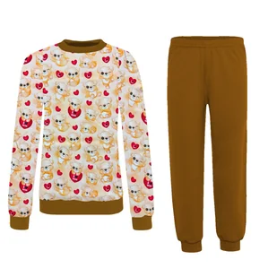 PIŻAMA DZIEWCZĘCA BAWEŁNIANA DŁUGI RĘKAW GRUBA CIEPŁA BAWEŁNA KOLOROWA MISIE WYGODNA POLSKI PRODUCENT 134 Długa piżama dziecięca/ młodzieżowa z nadrukiem - W...