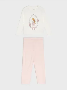 Sinsay - Bawełniana piżama dwuczęściowa z nadrukiem - kremowy