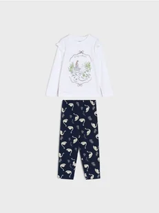 Sinsay - Piżama dwuczęściowa z ozdobnymi falbanami - kremowy -