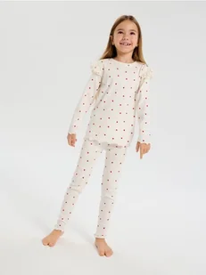 Sinsay - Prążkowana piżama dwuczęściowa w serca - kremowy