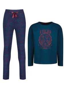 Piżama w kolorze morskim - czysta bawełna - dekolt: okrągły - pas / ściągacz: elastyczny - krój: wąski - nadruk - look: jednokolorowy
