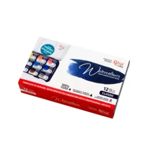 Zestaw farb akwarelowych w kostkach, o pojemności 2,5 ml w metalowej kasetce. Farby akwarelowe w kostkach wykonane są z naturalnych i syntetycznych pigmentów na bazie czystej gumy arabskiej. Doskonała jakość zastosowanych pigmentów gwarantuje czystość i transparentność kolorów. Większość kolorów w gamie powstała na bazie jednego pigmentu. Umożliwia to podczas mieszania uzyskanie czystych odcieni.