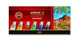 farby akrylowe Acrylic rozcieńczalne wodą trwale zasychającepo wyschnięciu pozostawiające powierzchnię nieodbarwiającą sięelastyczną i odporną na wodę nadają się do malowania wszystkich powierzchni nie chłonących wodywolnych od substancji oleistych charakteryzują się intensywnością barwpłynną konsystencją i wizualizacjąpracy pędzla można je swobodnie ze sobą mieszać w połączeniu z wodą tworzą transparentną powłokęktóra rozprowadza sięswobodnie takjak akwarela do technik wymagających gęstej farbynależy używać farby wyciśniętejbezpośrednio z tubki mogą służyć jako podkład do farb olejnych pędzle nie zaschnięte bezpośrednio po użyciu można myć wodą zestaw 10 kolorów: 162711 - 100 biały 162727 - 300 jasny czerwony 152713 - 200 lemon żółty 162715 - 310 czerwony 162710 - 500 jasno zielony 162716 - 400 jasny niebieski 162717 - 410 ultramaryn 152720 - 510 ciemno zielony 162738 - 640 jasno brązowy 162723 - 700 czarny wielkość tubki: 16 ml opakowanie: estetyczne pudełko tekturowe
