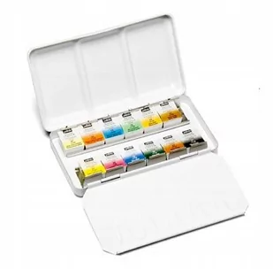 PEBEO FINE ZESTAW 12 AKWARELI W METALOWYM PUDEŁKU Akwarele Pebeo Fine to wysoko napigmentowane farby na bazie gumy arabskiej, oferujące szeroki wachlarz efektów na papierze. Doskonałe dla amatorów oraz profesjonalistów. Zestaw zawiera 12 kostek w metalowym opakowaniu z wbudowaną paletą.