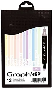 Graph'it markery na bazie alkoholu, zestaw 12 sztuk, 2 końcówki Soft Colors