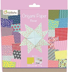 My Mandarine 52507O – Zestaw 60 arkuszy origami 20x20 cm 70 g (30 wzorów x 2 arkusze) + 1 arkusz naklejek „Oczy” – od 7 lat – KWIATY