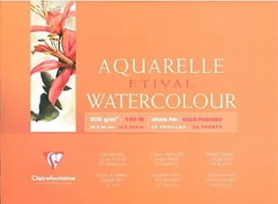 Clairefontaine 96472C blok do akwareli Etival 4-stronnie klejony - 25 arkuszy 30x40 cm 300g biały papier w 100% celulozowy drobnoziarnisty